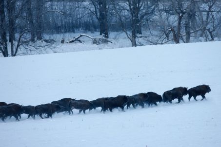 Après la Seconde Guerre mondiale, des programmes pour réintroduire le bison se mettent en place. Aujourd'hui, les populations grossissent progressivement, en Roumanie dans la région des Carpates par exemple. En 2014, 17 ruminants y recouvraient leur liberté, suivie de 14 individus en 2015. "La première réintroduction en Roumanie s'est tenue en 2012 dans le Parc Naturel Vanatori Neamt. Ce groupe compte 25 bisons dont 5 nés en liberté. Plusieurs autres réintroductions sont prévues sur deux autres sites de la région", précise Razvan Deju le biologiste du parc. Mais d'ajouter que le taux de mortalité peut s'avérer élevé dans les petits groupes, notamment lorsque les premiers animaux à mourir sont des femelles.
