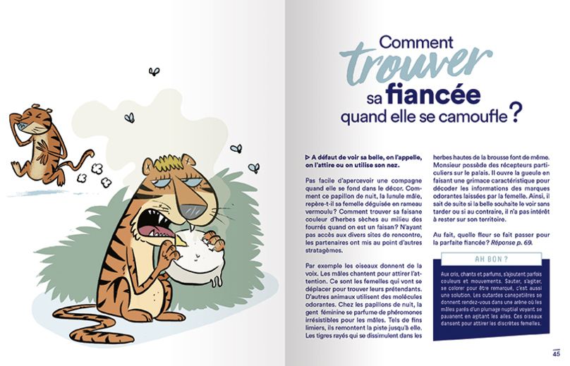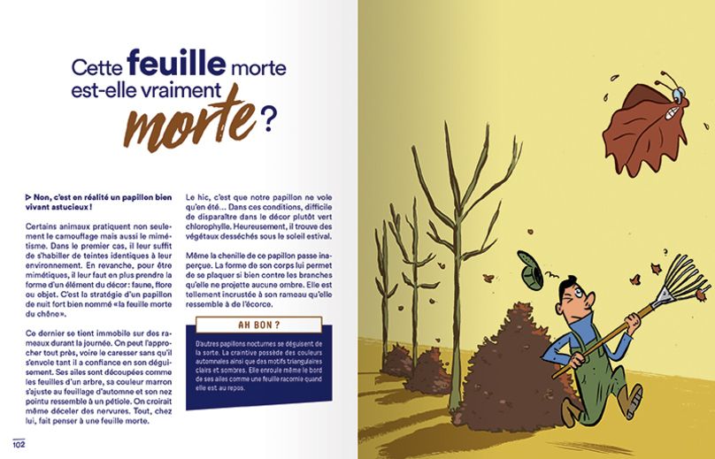 Soyez incollables face aux questions que posent les enfants sur les cachettes et le camouflage des animaux. Voici 50 antisèches sur des champions qui se fondent si bien dans le décor qu’il est difficile de les repérer (à commander ici).