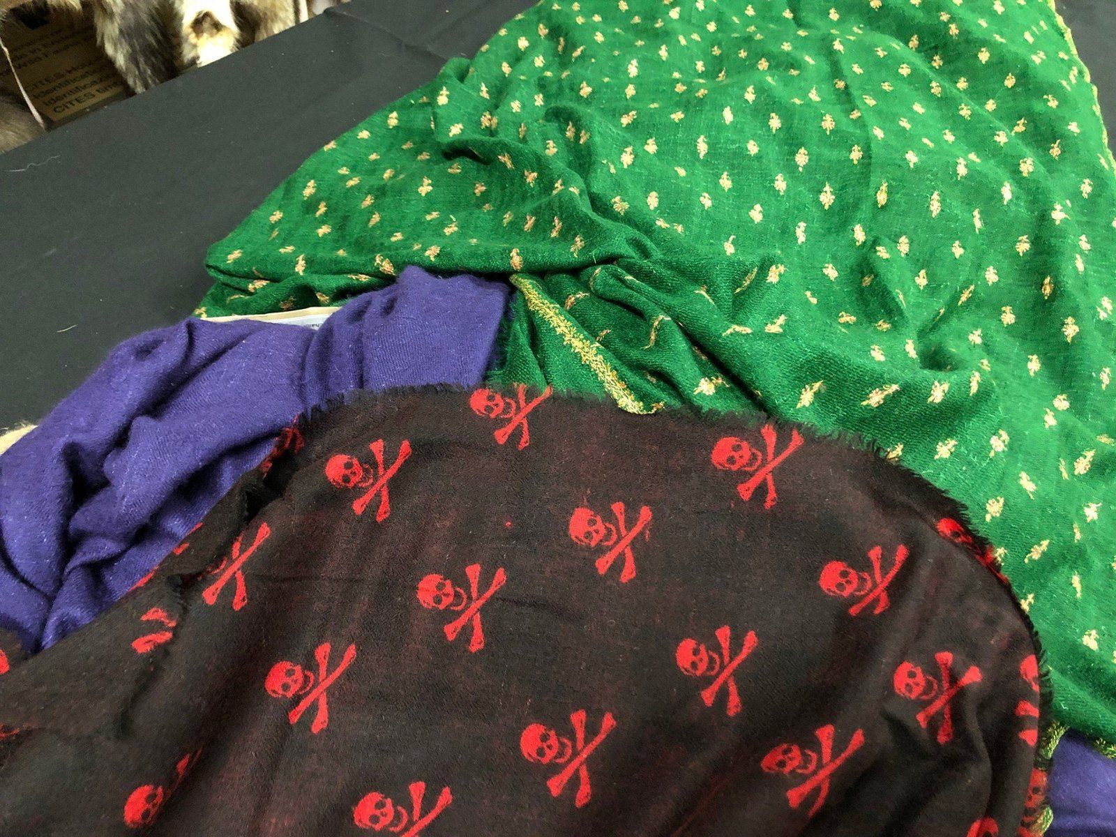Sur ces écharpes mixtes, les poils de jarre des antilopes du Tibet peuvent alors passer inaperçus. Je me souviens d'une écharpe saisie que Lisa Bradbury m'avait montrée dans la réserve de Berne. Elle était noire avec de minuscules têtes de mort rouges, semblable au drapeau kitsch d'un pirate. À l'exception d'une courte frange, elle ne ressemblait à aucun autre shahtoosh que j'avais pu voir. Aucun poil de jarre n'était visible à l'œil nu, sans doute à cause de la prépondérance du pashmina. Si ce châle n'avait pas été découvert au milieu d'autres shahtoosh —qui eux l'étaient sans l'ombre d'un doute—, il aurait pu échapper aux analyses et passer entre les mailles du filet, déplore Lisa Bradbury.