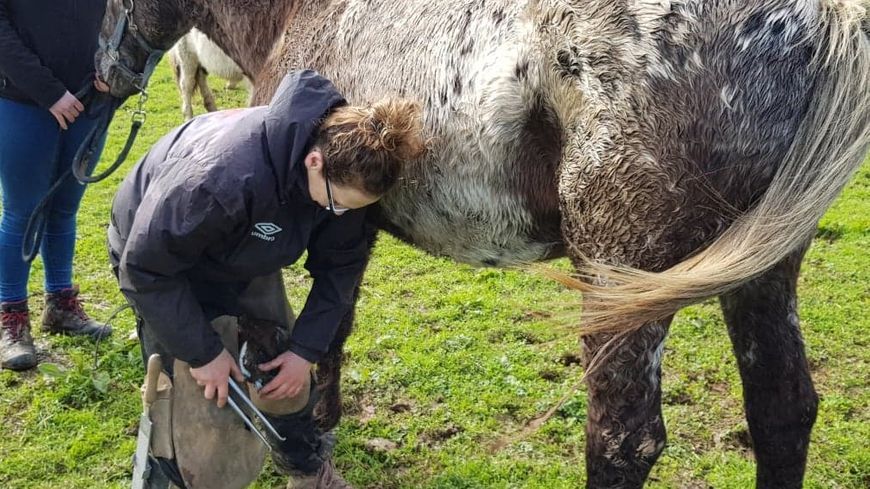 Les bénévoles de l'association Stéphane Lamart ont coupé les sabots des chevaux, qui n'avaient pas été entretenus depuis plusieurs années. (Cliquez pour agrandir)