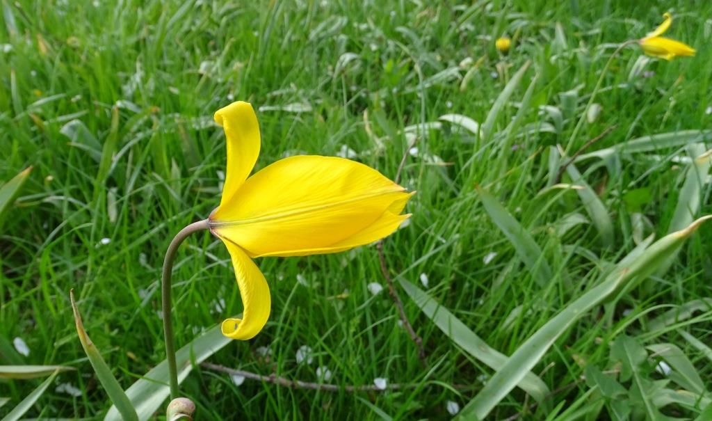 Plutôt rare en Europe de l'Ouest, on rencontre la Tulipe des bois ou Tulipe sauvage (Tulipa sylvestris) en particulier dans les vergers et les vignes… Photos : JLS (Cliquez pour agrandir)
