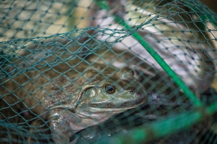 Des grenouilles vivantes en vente dans le marché de Shanghai le 26 janvier, le jour où le gouvernement chinois a annoncé la suspension du commerce d'animaux vivants au milieu de la crise du coronavirus. Photo : Edwin Remsberg, vwpics/AP