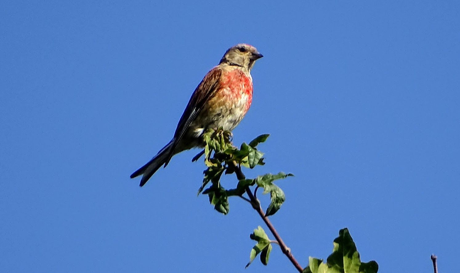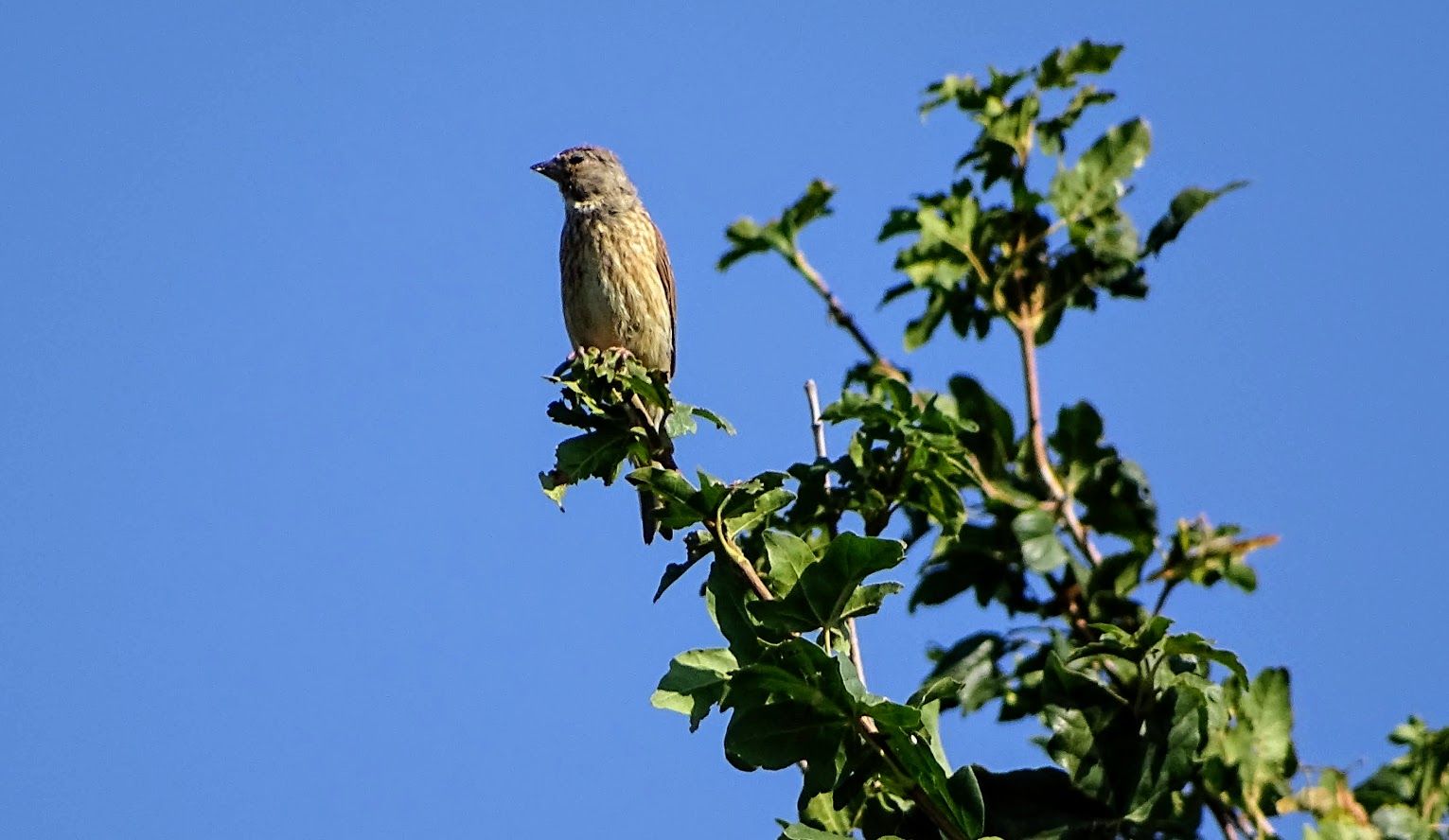 Les Linottes mélodieuses, en revanche, restent chez nous souvent jusqu’assez tard en saison : migrateurs partiels tardifs, il n’est pas rare d’en observer encore sous nos latitudes en octobre… Essentiellement granivore (l’espèce est partiellement insectivore en été), ce joli petit passereaux trouve en effet de quoi se nourrir pour peu qu’il y ait abondance de petites graines dans la nature…