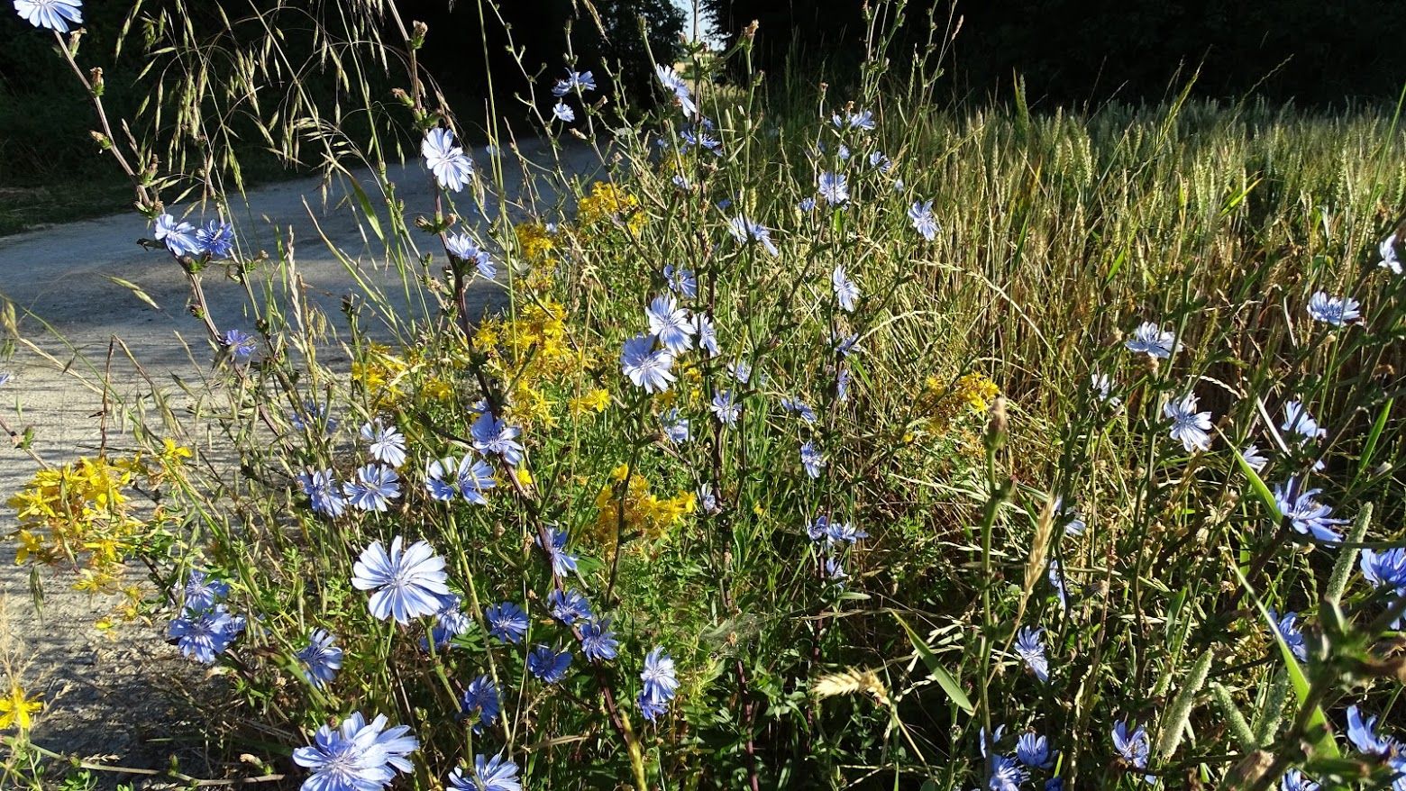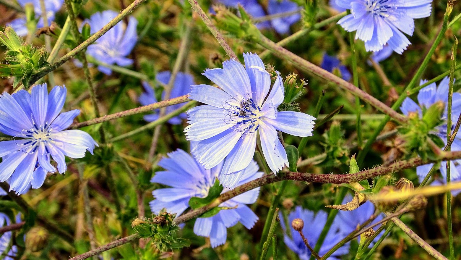 Une jolie fleur bleue qui illumine les bords de chemins et les talus et qui semble merveilleusement résister à l’actuelle chaleur, la robuste Chicorée sauvage est également un excellent aliment riche en divers nutriments…
